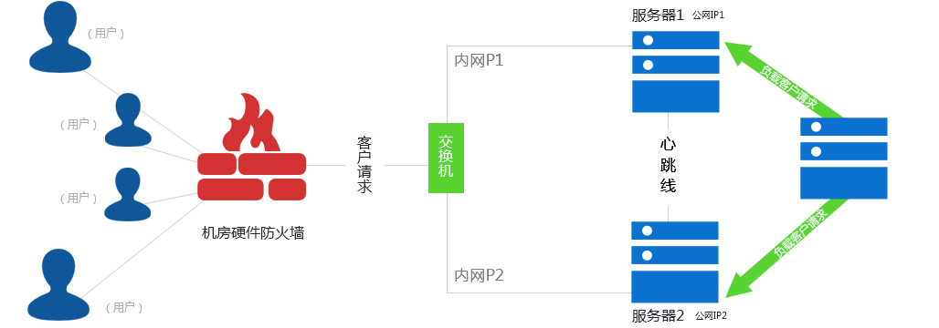 此方案主要應(yīng)用于WEB、數(shù)據(jù)庫(kù)等應(yīng)用服務(wù)器,服務(wù)器必須在同一機(jī)房且機(jī)器之間有心跳線連接