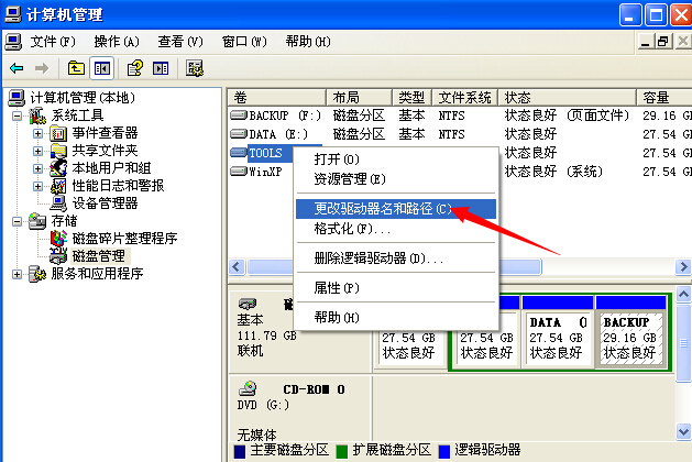 更改盤(pán)符的卷標(biāo)-右擊該盤(pán)符-更改驅(qū)動(dòng)器號(hào)和路徑-指派驅(qū)動(dòng)器號(hào)。 ![]()