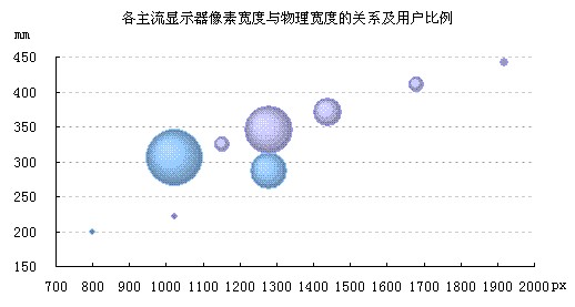 網(wǎng)頁設(shè)計(jì)師往往需要考慮不同客戶端的瀏覽體驗(yàn)。文字大小,是用戶體驗(yàn)中的一個(gè)重要部分。不同的分辨率,不同的顯示器尺寸,不同的DPI,乃至不同的瀏覽器設(shè)置,都會(huì)對(duì)最終展現(xiàn)的文字大小帶來影響。雖然現(xiàn)在很多瀏覽器已經(jīng)可以方便地縮放頁面,但用戶每次光臨都要重新縮放,總歸麻煩,何況還有許多用戶不知道如何縮放頁面。最好還是根據(jù)用戶的分辨率給用戶一個(gè)比較體貼的默認(rèn)字號(hào),那這個(gè)字號(hào)多大合適呢? 12px?14px?15px?16px? 還是壓根就不應(yīng)該使用px這個(gè)單位呢? 問題的根源,在于屏幕上的一切字號(hào)單位(px,pt,em)都是相對(duì)單位,單憑它們并不能確定文字的實(shí)際大小。何況人對(duì)文字大小的根本感知在于眼睛的視角,這不僅取決于文字的物理尺寸,還取決于它到人眼的距離。 首先假定一個(gè)我們希望達(dá)到的文字物理尺寸,例如設(shè)定為17寸1280 * 1024顯示器上的16px,計(jì)算可得它的高度約是4.32mm,我們計(jì)劃讓網(wǎng)頁文字在大部分顯示器上都比較接近這個(gè)大小,那么在不同分辨率下應(yīng)該顯示成多大的字號(hào)呢? 統(tǒng)計(jì)用戶主要的分辨率和對(duì)應(yīng)的屏幕大小 要在物理尺寸和分辨率之間換算,首先要統(tǒng)計(jì)分辨率和對(duì)應(yīng)的屏幕尺寸。用戶分辨率的分布情況可以從網(wǎng)站的統(tǒng)計(jì)日志里獲得。由于每個(gè)分辨率設(shè)置可能對(duì)應(yīng)好幾個(gè)不同尺寸的屏幕,而屏幕尺寸又無法通過網(wǎng)頁獲得,只好對(duì)現(xiàn)在的顯示器市場進(jìn)行統(tǒng)計(jì)分析:針對(duì)某一分辨率,統(tǒng)計(jì)可能的屏幕尺寸范圍,從最小到最大,相對(duì)主流的是多大(或使用該范圍的中間值作為主流尺寸)。如下圖所示: ![]() 電腦顯示器市場(產(chǎn)品種類繁多,難免掛一漏萬,數(shù)據(jù)僅供參考) 計(jì)算每個(gè)分辨率主流屏幕尺寸的物理寬度 現(xiàn)在的顯示器長寬比不僅有4:3的標(biāo)準(zhǔn)屏,16:10的寬屏,還有更多不規(guī)則比例,為了在不同長寬比的顯示器之間進(jìn)行比較,統(tǒng)一使用橫向分辨率來統(tǒng)計(jì)。用主流尺寸和長寬比(假設(shè)像素的長和寬相同)計(jì)算出屏幕寬度(英寸),再換算成公制(毫米),將其一一對(duì)應(yīng)就可看出屏幕大小的趨勢。再結(jié)合各分辨率的用戶分布,結(jié)果如下圖所示(圖片中每個(gè)點(diǎn)對(duì)應(yīng)一個(gè)分辨率,橫軸為屏幕橫向的像素?cái)?shù),縱軸為該屏幕的物理寬度,氣泡大小表示使用該分辨率的用戶人數(shù)。其中藍(lán)色氣泡表示標(biāo)準(zhǔn)屏,紫色表示寬屏):最大的三個(gè)氣泡分別是1024*768,1280*1024,1280*800。 ![]()