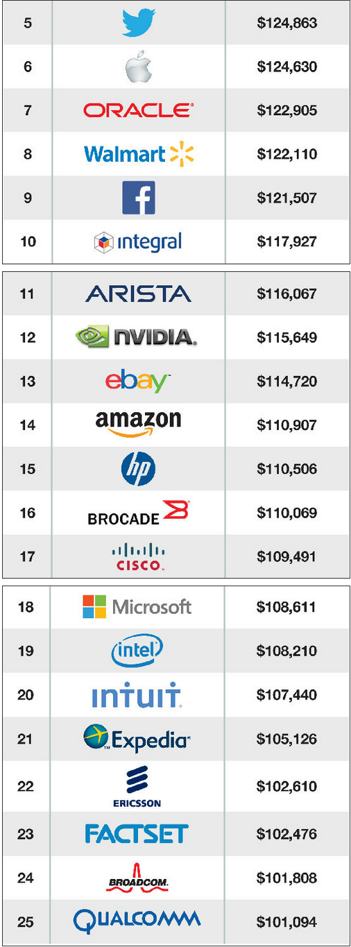 以下為25家頂級公司的程序要年薪報告圖