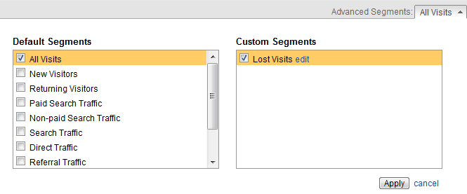 當然,你可能會說這種用戶區(qū)分的方法不準確,這類用戶不一定就是迷失用戶,也有可能他們確實找到并瀏覽了具體內(nèi)容,但因為內(nèi)容不夠吸引人或者其他原因而馬上離開了該頁面。所以這里用高級群組劃分出來的這類Visits的數(shù)量不能看作是迷失用戶的一個絕對數(shù)值,我們只能認為里面的大部分Visits都是迷失用戶,而不排除存在某些另類。所以更合理的方法是通過計算這類Visits占網(wǎng)站總Visits的比例情況來分析網(wǎng)站的信息架構(gòu)到底是否合理,我們可以在Google Analytics上面選取網(wǎng)站的All Visits和Lost Visits進行比例和趨勢的比較,如下圖: