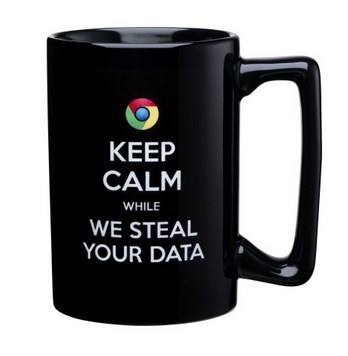 微軟發(fā)售的T恤上印有Chrome圖標(biāo),并附上“Keep calm while we steal your data”。