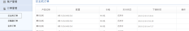 用戶管理和訂單管理沒有什么好介紹的了,什么,你不知道?好吧。我就插幾句,用戶管理功能包括賬戶信息、資料修改和修改密碼,訂單管理里面云主機訂單、云磁盤訂單、業(yè)務(wù)訂單等,這些功能主要可以修改的個人信息以及查看自己所有產(chǎn)品的購買詳情,知情權(quán)是一個消費者最基本的權(quán)利。