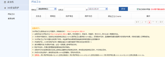 最近,發(fā)現(xiàn)主機后臺添加了一個360安全防護功能,應(yīng)該是360和IDC商的一個合作吧。360這幾年的動作挺大的,先后建立安全聯(lián)盟推廣自己的產(chǎn)品。360真是一個讓人既愛又恨的公司,不得不說他們他們安全產(chǎn)品還是很不錯的。