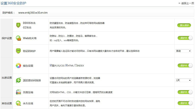 在360防護后臺,提供了諸如DDOS防攻擊,驗證碼防護等保護功能,普通的企業(yè)站和個人站來說,安全防護已經(jīng)足夠了。