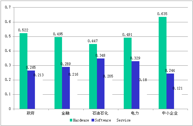 圖:我國各行業(yè)IT市場結(jié)構(gòu)(2012)