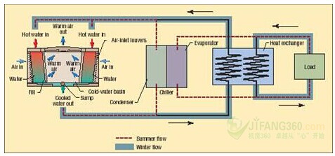 提示:冬季時閉式冷卻塔作為干冷器(風冷)時,可以不噴淋水。這種工況時閉式冷卻塔的散熱量很小,在數據中心不是很實用,其他工業(yè)行業(yè)有使用。