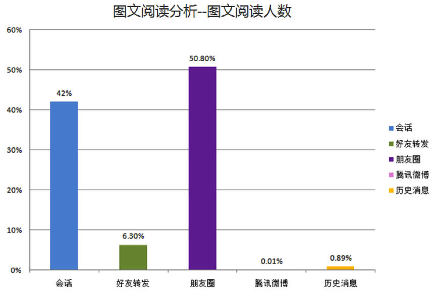 每個(gè)指標(biāo)的數(shù)據(jù)都來(lái)源5個(gè)渠道:會(huì)話(huà)、好友轉(zhuǎn)發(fā)、朋友圈、騰訊微博、歷史消息。