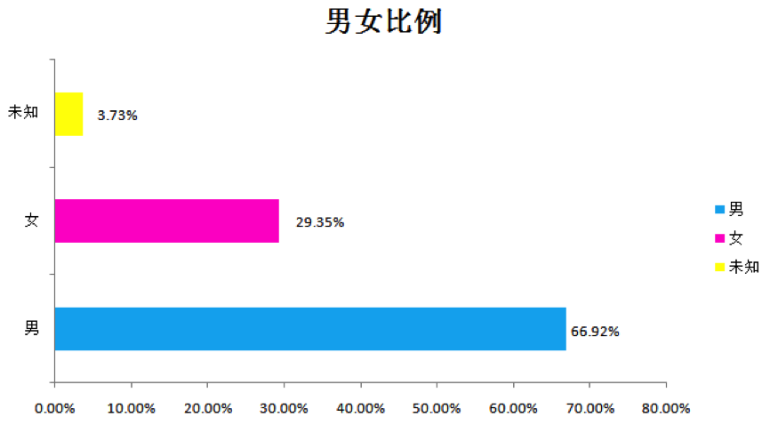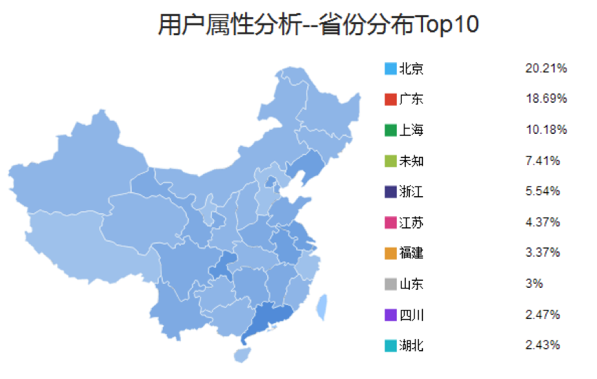 由于各個(gè)公眾號(hào)的定位以及用戶(hù)群體不同,用戶(hù)屬性會(huì)有所差異;下面列出本號(hào)的用戶(hù)熟悉以供參考(由于城市數(shù)量較多,就不列出)。