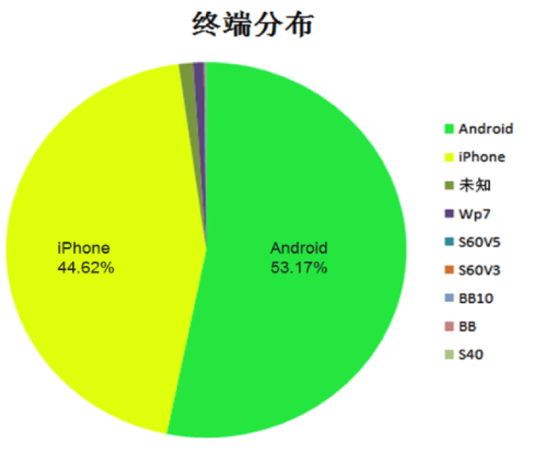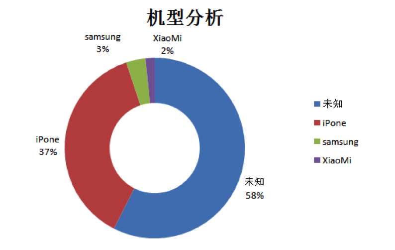已知的機(jī)型里,iPhone最多,三星和小米其次,其他的應(yīng)該絕大部分是Android手機(jī),無(wú)奈國(guó)產(chǎn)機(jī)紛繁復(fù)雜,統(tǒng)計(jì)起來(lái)也非常麻煩。如果是針對(duì)某一機(jī)型,或某一操作系統(tǒng)做的公眾號(hào),機(jī)型或終端分布才會(huì)出現(xiàn)巨大偏差。