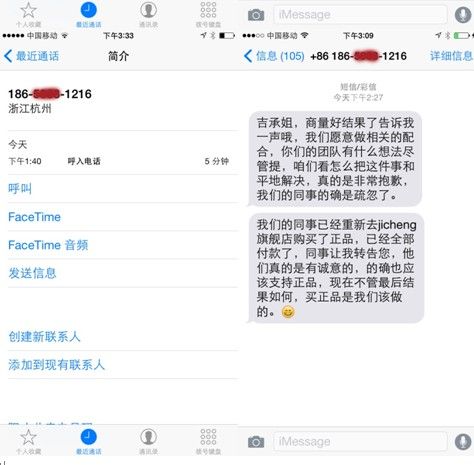 2、截至2014年11月11日14:00為止,分別有自稱是代表天貓公關(guān)公司的人和天貓小二的人打電話來要求我不要把天貓員工穿盜版衛(wèi)衣的真相向媒體披露,但為何截至目前,我們還沒有收到官方的正式致歉?