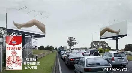 不過杜蕾斯大年初六,放假最后一天的文案卻是經(jīng)典之作?!爸磺髿q歲平安,便可日日愉歡?!蔽陌盖擅顣崦?,圖片借用回程堵車,深意自了然。