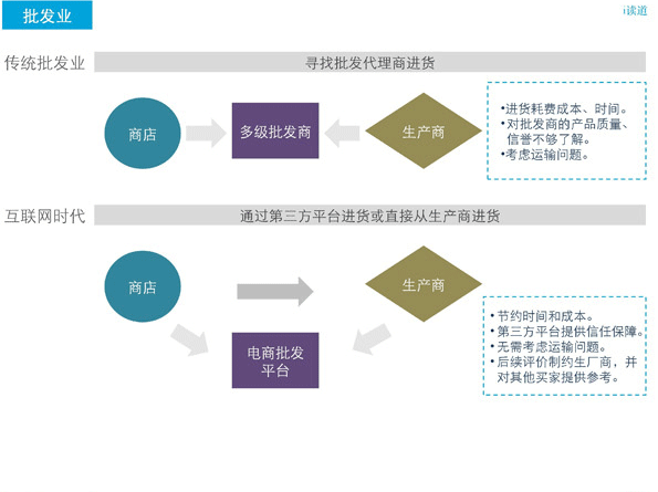 傳統(tǒng)批發(fā)業(yè)有極大的地域限制,一個想在北京開家小禮品店的店主需要大老遠(yuǎn)的跑到浙江去進(jìn)貨,不僅要面對長途跋涉并且還需要面對信任問題。所以對于進(jìn)貨者來說,每次批發(fā)實(shí)際上都是一次風(fēng)險。