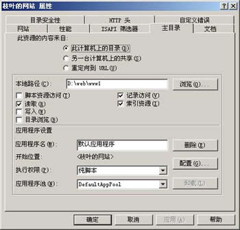網(wǎng)站訪問(wèn)權(quán)限是限定用戶訪問(wèn)網(wǎng)站時(shí)的權(quán)限,“讀取”是必需的,“運(yùn)行腳本”可以讓站點(diǎn)支持ASP,其它權(quán)限可根據(jù)需要設(shè)置。