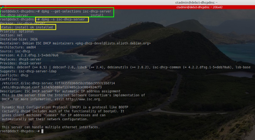 #apt-getinstallisc-dhcp-server[安裝theISCDHCPServer軟件]#dpkg--get-selectionsisc-dhcp-server[確認軟件已經(jīng)成功安裝]#dpkg-sisc-dhcp-server[用另一種方式確認成功安裝]
