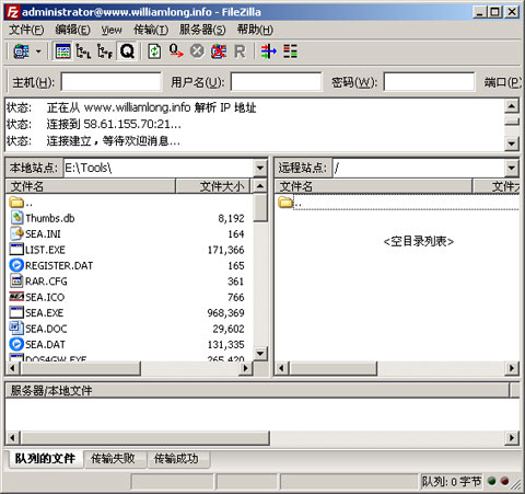 FileZilla - 將客戶端的文件上傳到服務(wù)器上,最常用的軟件就是FTP了,微軟的IIS自帶了一個簡單的FTP服務(wù)器軟件,如果覺得不好用,服務(wù)器上也可以安裝免費的FileZilla服務(wù)器軟件,客戶端可以使用免費的FileZilla Client,支持多線程上傳文件。