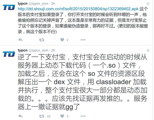 近日,曾經(jīng)曝光“12306泄密事件”、上過CCTV的用戶typcn在Twitter中發(fā)文,稱支付寶安卓版存在盜竊用戶隱私的情況。而支付寶官方微博今日就此回應(yīng)稱,支付寶只申請(qǐng)業(yè)務(wù)需要的權(quán)限,不會(huì)做額外的信息采集和后臺(tái)操作,更不會(huì)侵犯、泄露任何用戶隱私信息。