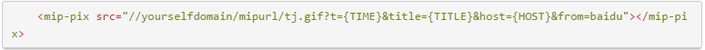 MIP會(huì)自動(dòng)匹配參數(shù),生成請(qǐng)求地址,例如://yourselfdomain/mipurl/tj.gif?t=1459415529464&title=MIP_PIX_DEMO&host=mip.bdstatic.com&from=baidu