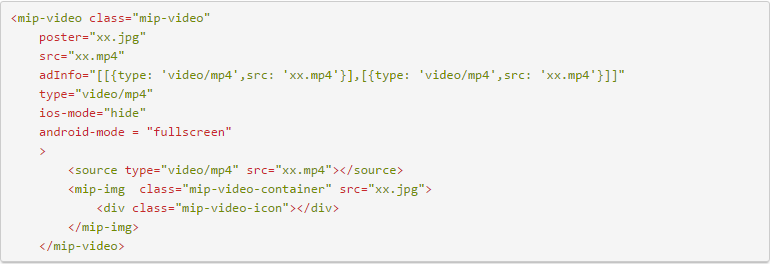 mip-video能夠像html5的video標(biāo)簽一樣播發(fā)視頻,可以是圖文形式的,也可以是純文字結(jié)構(gòu),不同的形式使用的代碼是不同的。