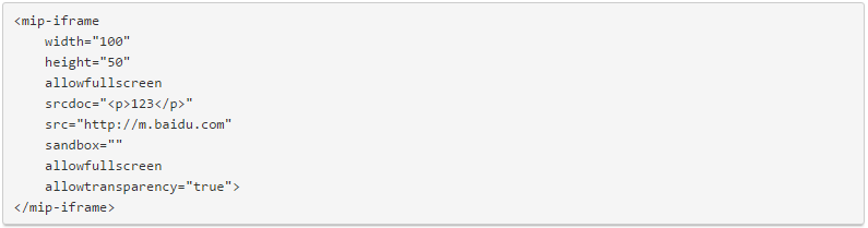 mip-iframe 組件所涉及的屬性有:寬度(width),高度(height),允許全屏(allowfullscreen),引用內(nèi)容(srcdoc),引用地址(src),沙盒權(quán)限(sandbox),
