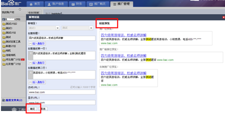 為了從不同側(cè)面充分展示企業(yè)產(chǎn)品或業(yè)務(wù)的優(yōu)勢(shì),建議多寫(xiě)幾個(gè)不同的創(chuàng)意。點(diǎn)擊“確定”保存了創(chuàng)意即可。