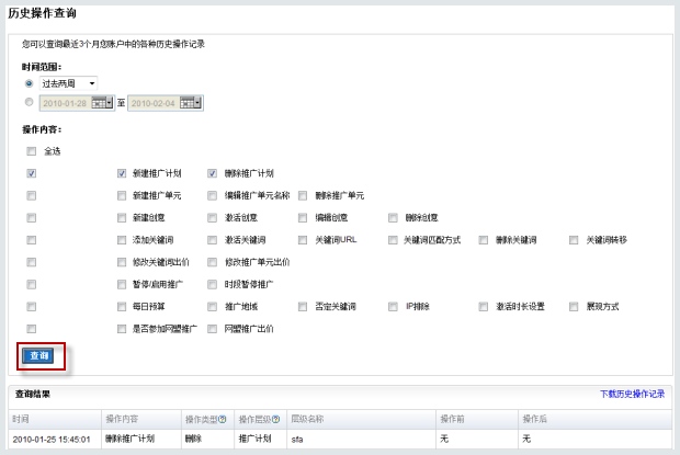 歷史操作查詢工具可幫助您查看自己對賬戶進(jìn)行操作的歷史記錄,以此判斷哪些操作可能影響您的推廣效果,對調(diào)整做出決策。