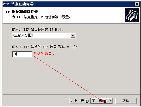 把FTP和對應(yīng)的站點IP關(guān)聯(lián)起來,默認(rèn)的FTP服務(wù)占用端口 21
