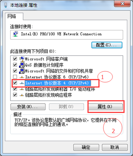 3、在網(wǎng)絡(luò)連接屬性窗口中,找到 Internet協(xié)議版本4(TCP/IPv4),然后點(diǎn)擊“屬性”,如下圖所示