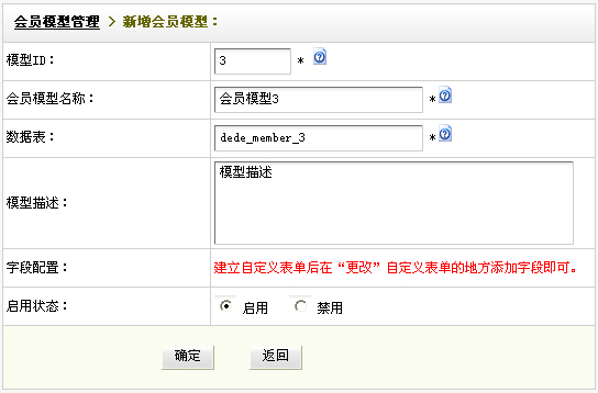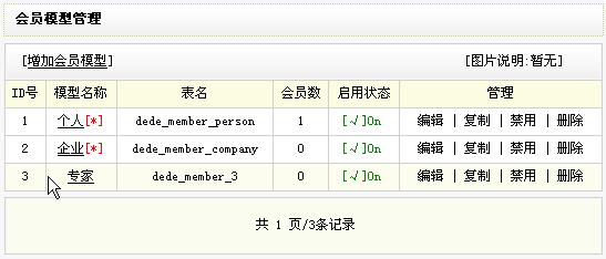 按圖三創(chuàng)建好會(huì)員模型以后,我們返回圖二界面,即可看到剛才所創(chuàng)建的新模型。如圖四: