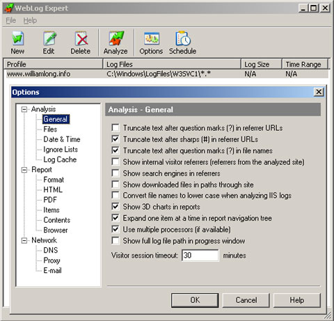 雖然Google Analytics是一款強(qiáng)大的免費(fèi)的網(wǎng)站分析服務(wù),但必須加入統(tǒng)計(jì)代碼才能使用,WebLog Expert則可以直接分析網(wǎng)站的訪問(wèn)日志文件,通過(guò)日志文件分析出網(wǎng)站的站點(diǎn)訪問(wèn)者、活動(dòng)統(tǒng)計(jì)、文件訪問(wèn)量、搜索引擎、瀏覽器、操作系統(tǒng)和錯(cuò)誤頁(yè)面等等眾多的統(tǒng)計(jì)信息,是網(wǎng)絡(luò)監(jiān)測(cè)的好助手。這個(gè)軟件本身不免費(fèi),不過(guò)其另一個(gè)版本W(wǎng)ebLog Expert Lite是免費(fèi)的。