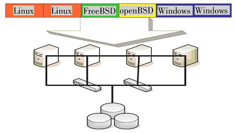 目前,VMware、Citrix、IBM和Microsoft都能提供完整的服務(wù)器虛擬解決方案,通過安裝部署,可以整合所有的PC服務(wù)器,然后根據(jù)業(yè)務(wù)系統(tǒng)的需求,安裝相應(yīng)的操作系統(tǒng)環(huán)境。這些虛擬解決方案都可使人們?cè)谝慌_(tái)物理機(jī)器上,安裝多個(gè)不同版本、不同類型的操作系統(tǒng),獨(dú)立地對(duì)外提供服務(wù)。