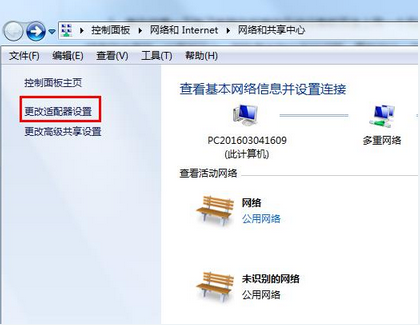 2、然后選擇打開“更改適配器設(shè)置”。如下圖: