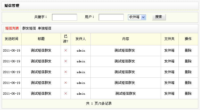 群發(fā)短信:可以對網(wǎng)站的注冊會員進行批量群發(fā)站內(nèi)消息;