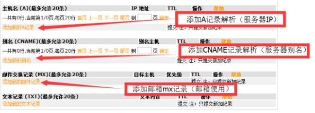 添加A記錄解析