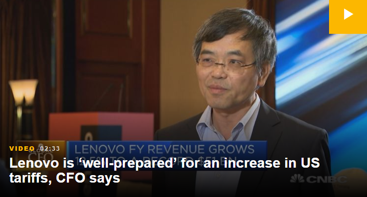 聯(lián)想首席財(cái)務(wù)官黃偉明在接受CNBC采訪時(shí)表示:“我們顯然做好了充分準(zhǔn)備,以防萬一。”
