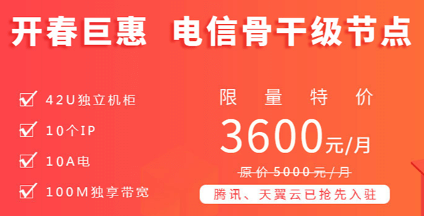 億恩科技特推出IDC電信機柜特價優(yōu)惠活動,42U標準機柜/10個ip/10A電/100M帶寬,特價低至3600元/月。