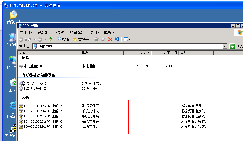 輸入您的用戶(hù)名和密碼,進(jìn)入系統(tǒng)。登陸您的系統(tǒng)之后,打開(kāi)我的電腦,就可以看到云主機(jī)本地磁盤(pán)下方多了幾個(gè)磁盤(pán)驅(qū)動(dòng)器,那就是你的本地磁盤(pán),如下圖.選擇在你本地磁盤(pán)的內(nèi)容,直接復(fù)制,粘貼到你的云主機(jī)上就可以了。