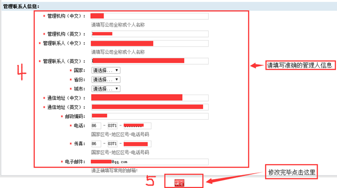 8、修改管理聯(lián)系人信息,點(diǎn)擊【確定】完成設(shè)置。