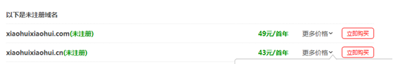 如果顯示的已注冊,說明此域名已被別人注冊,就需要更換域名查詢并提交注冊。 如上圖所示是未注冊狀態(tài),即可以注冊此域名,直接點(diǎn)擊購買鏈接,進(jìn)入到購買注冊頁面。