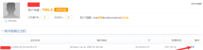 三、在管理界面可以看到所購買的云主機(jī)詳情信息