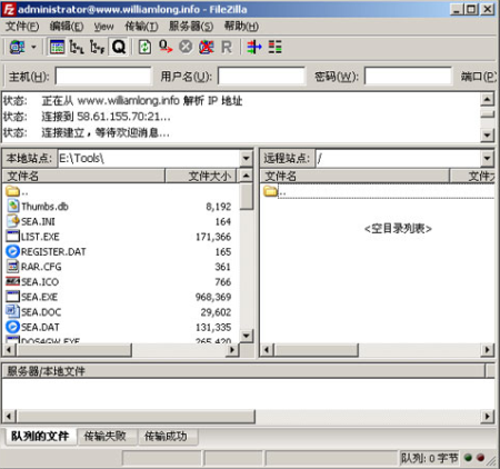 服務器FileZilla-將客戶端的文件上傳到服務器上,這個最常用的軟件是FTP了,微軟的IIS自帶了一個簡單的FTP服務器管理軟件,如果覺得不好用,服務器上也可以安裝免費的FileZilla服務器管理軟件,客戶端可以使用免費的FileZilla Client,支持多線程上傳文件。