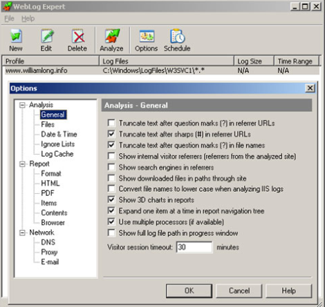 WebLog Expert - 雖然Google Analytics是一款強大的免費的網(wǎng)站分析服務,但必須加入統(tǒng)計代碼才能使用,WebLog Expert則可以直接分析網(wǎng)站的訪問日志文件,通過日志文件分析出網(wǎng)站的站點訪問者、活動統(tǒng)計、文件訪問量、搜索引擎、瀏覽器、操作系統(tǒng)和錯誤頁面等等眾多的統(tǒng)計信息,是網(wǎng)絡監(jiān)測的好助手。這個軟件本身不免費,不過其另一個版本W(wǎng)ebLog Expert Lite是免費的。